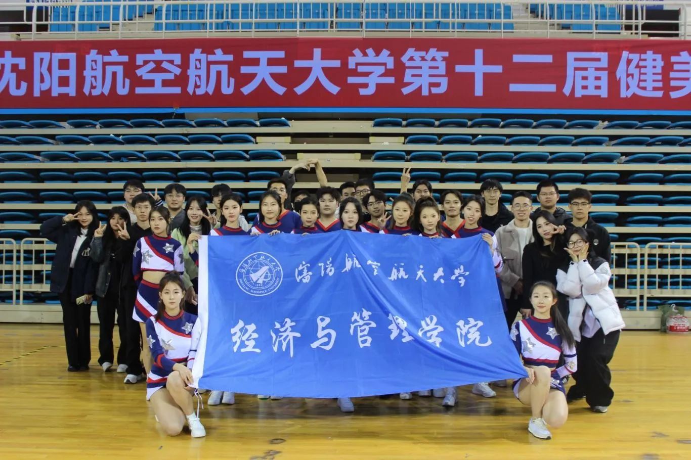 她们以灵动之姿、默契之态,在赛场上闪耀。整齐的动作、飞扬的激情,如繁星璀璨。无数日夜的苦练,终得佳绩,为学院添彩,尽显青春风采与团队魅力。
