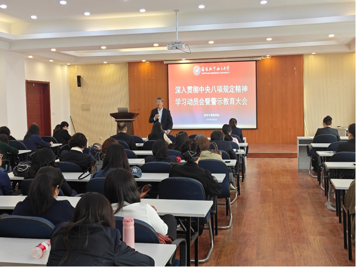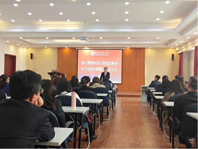 党委书记高丹传达了校院两级党委关于开展深入贯彻中央八项规定精神学习教育的实施方案,提出了工作要求:一是提高政治站位,深入学习贯彻习近平总书记关于加强党的作风建设的重要论述和中央八项规定及其实施细则精神,切实打牢思想政治基础;二是坚持问题导向,紧密结合职能职责,对标对表查摆师生反映强烈的突出问题,做到边学边查边改,立查立改、即知即改;三是注重工作实效,坚持学习教育与中心工作两手抓、两促进,以优良作风凝心聚力、干事创业,不断凝聚推动学院高质量发展的强大合力。