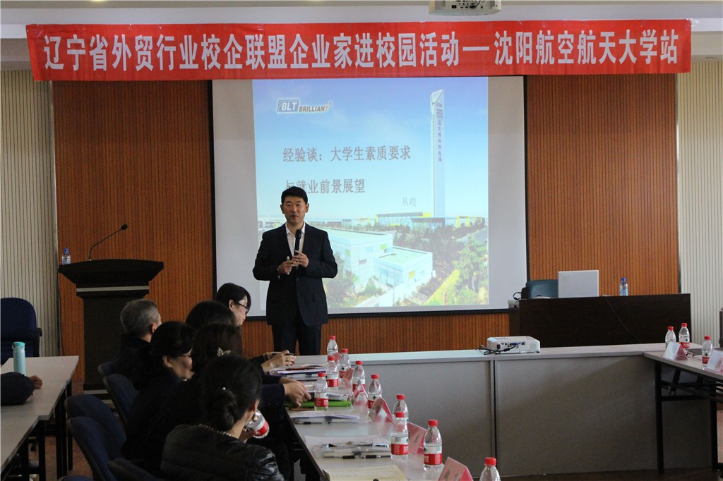 在辽宁省外贸行业校企联盟企业家进校园活动中首先由辽宁省外贸行业校企联盟yl6776永利集团牵头负责人张波老师介绍了辽宁省外贸行业校企联盟经管学院承办活动情况。2017年12月yl6776永利集团与辽宁省外贸联盟签订协议。2018年上半年以yl6776永利集团为牵头单位与东北财经大学、辽宁对外经贸学院、大连工业大学、大连财经学院等高校部署了企业家进校园讲座计划,该计划得到了高校实习基地沈阳黎明航空发动机集团、沈阳远大集团、西姆集团有限公司、大连市跨境电子商务协会等单位的支持和协助。具有代表性的活动有:大连睿道信息技术有限公司专利代理人、“知识产权管理体系(IPMS)”专家为联盟内学校教师举办了知识产权专题讲座。友华国际商务有限公司法人、越南友华国际新能源科技有限公司董事长王友华主任为联盟内学校举办了“‘一带一路’的机遇与挑战”的学术讲座。沈河区人民法院民庭审判长王云娇法官走进沈航国际经济与贸易专业《经济法》课堂,丰富的实判案例给学生带来了全新的课堂体验。2018年9月26日yl6776永利集团经管学院参加了辽宁省外贸行业校企联盟与海城市人民政府项目需求对接会。2018年下半年yl6776永利集团经管学院将与沈阳师范大学、沈阳化工大学、辽宁对外经贸学院等同盟院校共同开展专家进校园讲座。