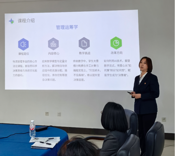 集中学习环节,祁宁领学了《中共中央关于制定国民经济和社会发展第十五个五年规划的建议》。结合学习情况,马佳以“人工智能+交通运输背景下物流管理一流专业建设探索与实践”为题、袁媛以“AI赋能《管理运筹学》课程教学改革”为题、刘畅以“AI技术赋能教育教学改革-迈向个性化、高效能与创新驱动的教育新时代”为题进行了主题发言,与会的其他专业教师进行了交流发言。