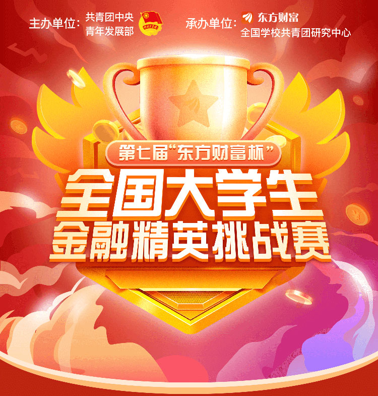 加强对大学生的金融实践教育,帮助大学生掌握金融基础知识,增强金融安全意识,提高金融实践能力,完善就业创业素质,团中央青年发展部决定举办第七届“东方财富杯” 全国大学生金融精英挑战赛。